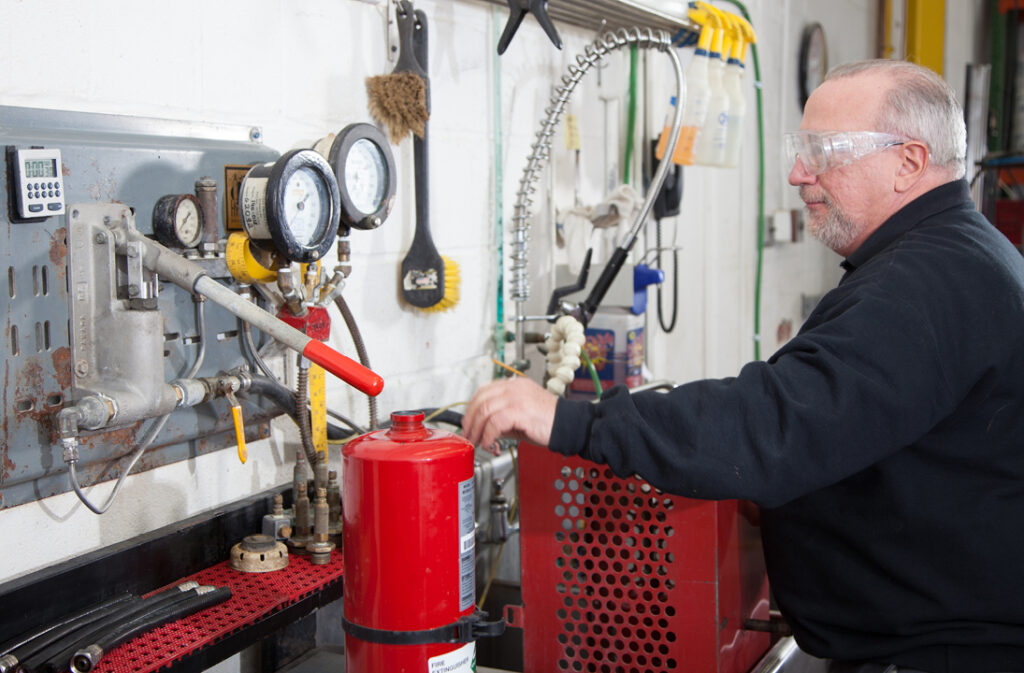 - Perform a pressure test to ensure the extinguisher is sealed properly and holds pressure.